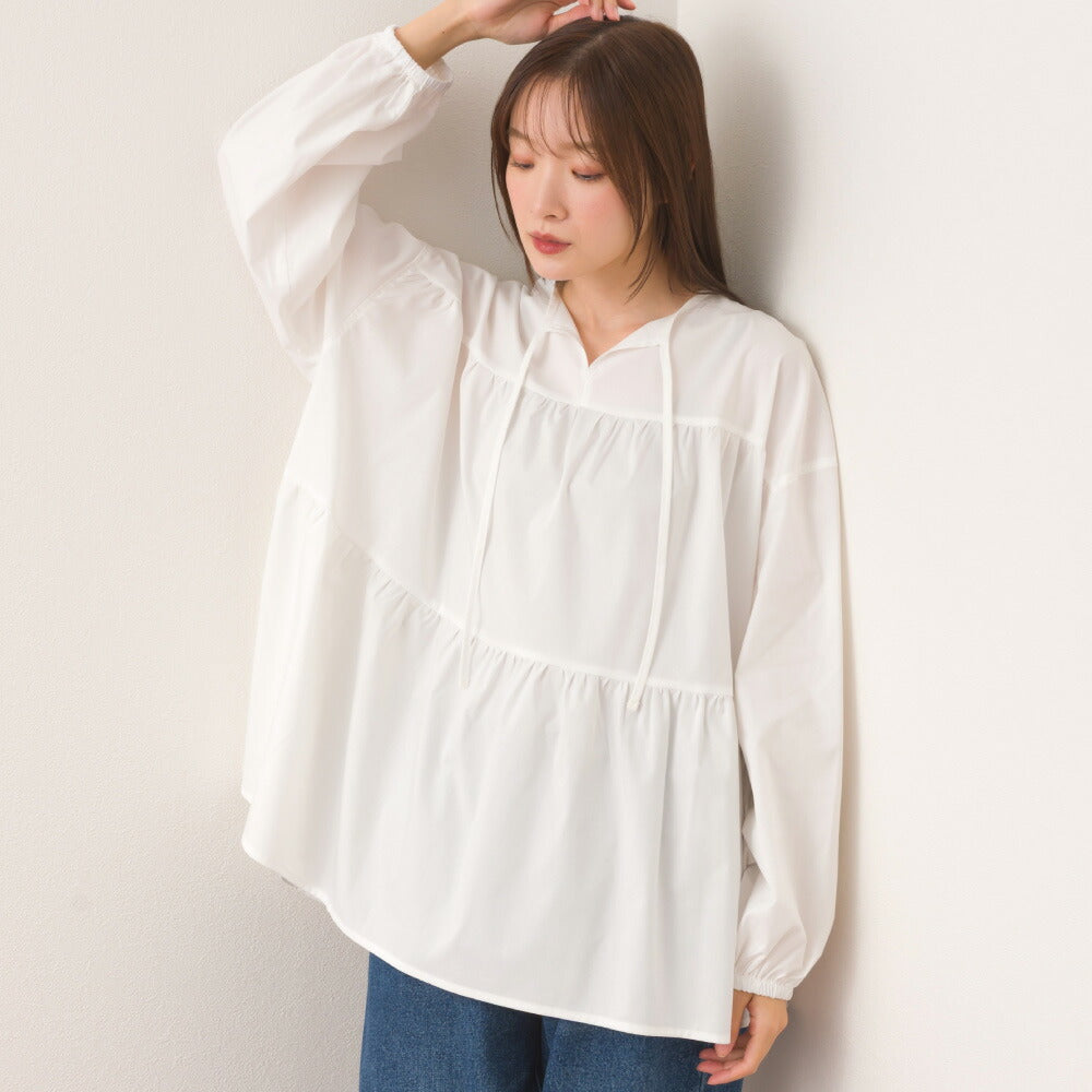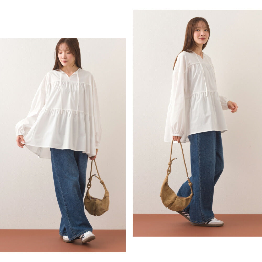 叭形下擺巧妙地遮掩身材,展現女性柔美氣質。簡約的V領和緞帶設計更添幾分休閒氣息。這款上衣本身就是一件吸睛單品,可單穿,無論是日常穿著還是外出場合都非常合適。飄逸的下擺隨著你的每一個動作,更襯托出你的嫵媚動人。