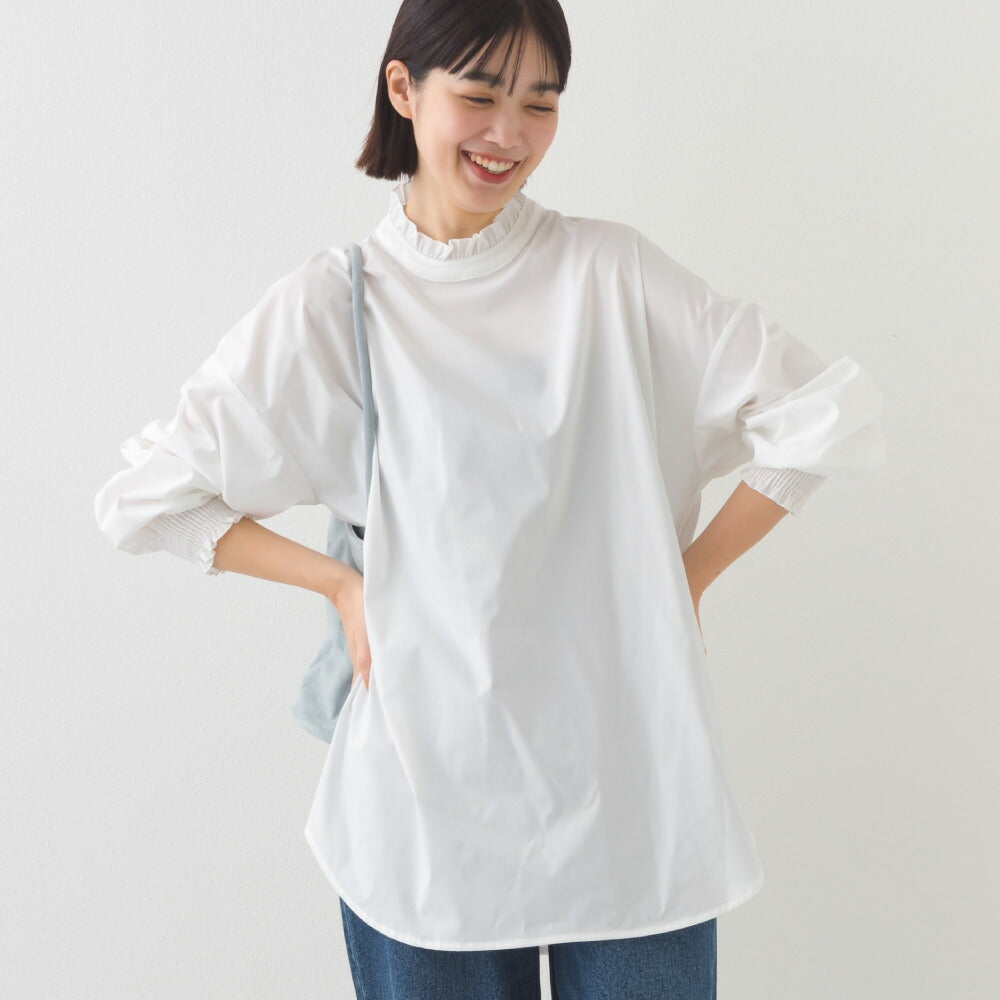 領口的荷葉邊設計更添優雅女性魅力,簡約而不失精緻。寬鬆的版型和落肩設計,營造出輕鬆自在的穿著感受。這款百搭單品,單穿或內搭針織衫或外套都非常出彩。它是一款優雅的基本款,適合日常穿著和辦公場合。